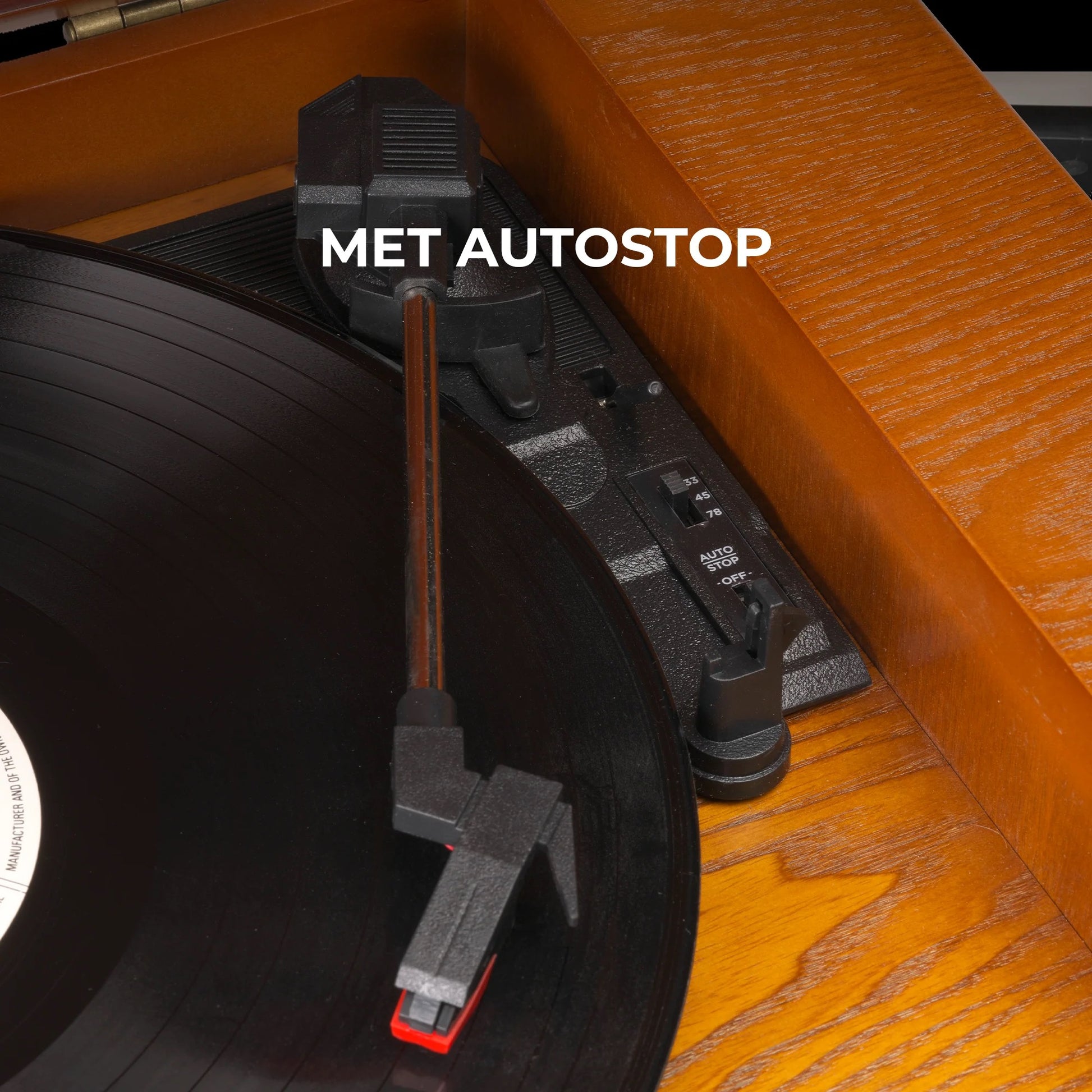 - Houten retro platenspeler (3 snelheden 33-1/3, 45 78 RPM)