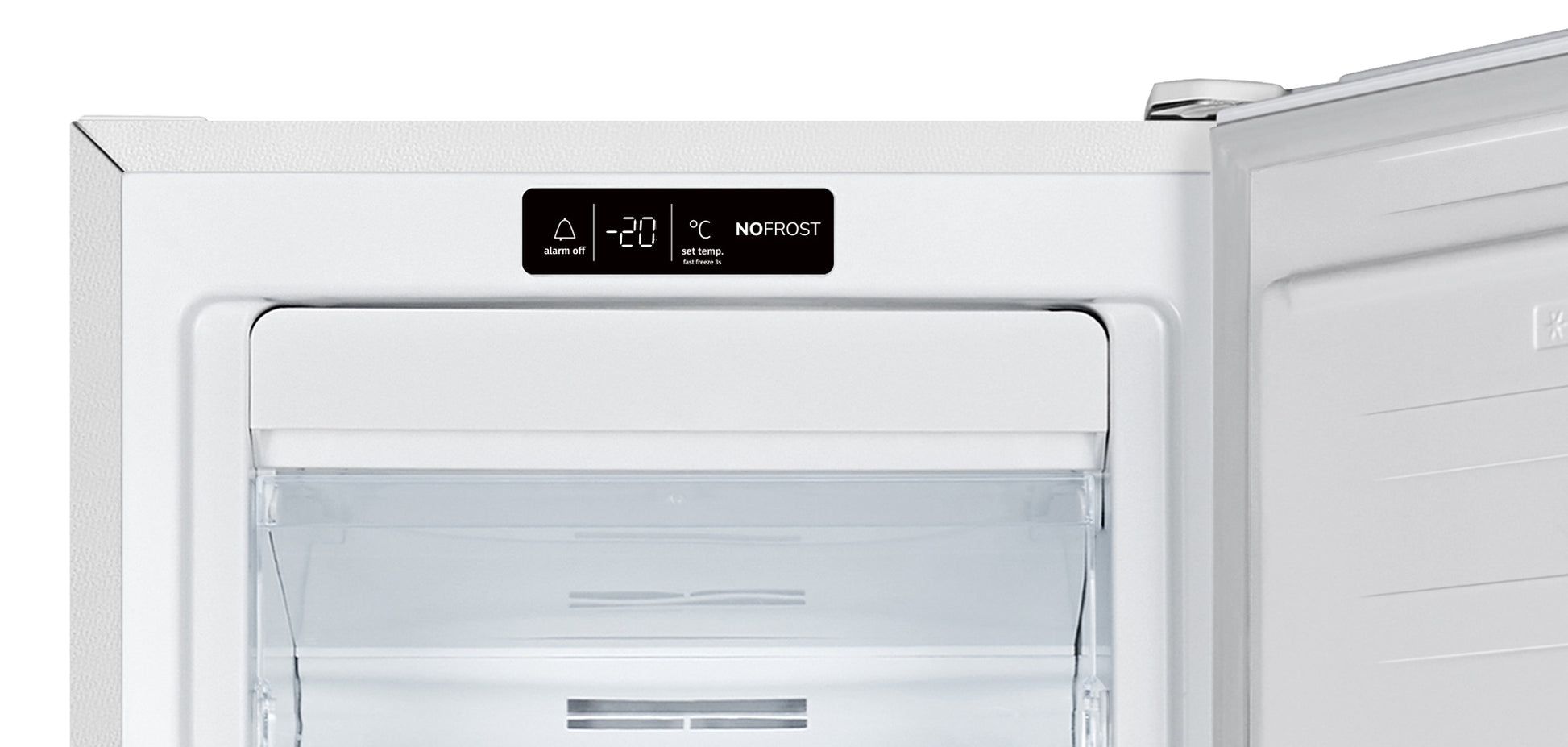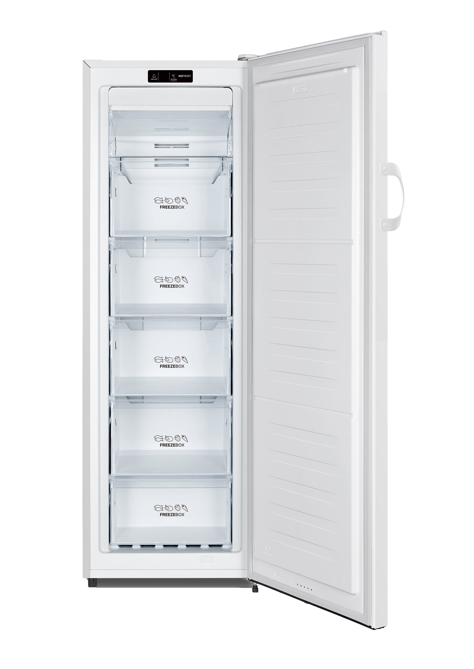 Gebruiksgemak: LED-display + elektronische temperatuurregeling, FastFreeze-functie voor snel invriezen, en alarmsignaal bij open deur.