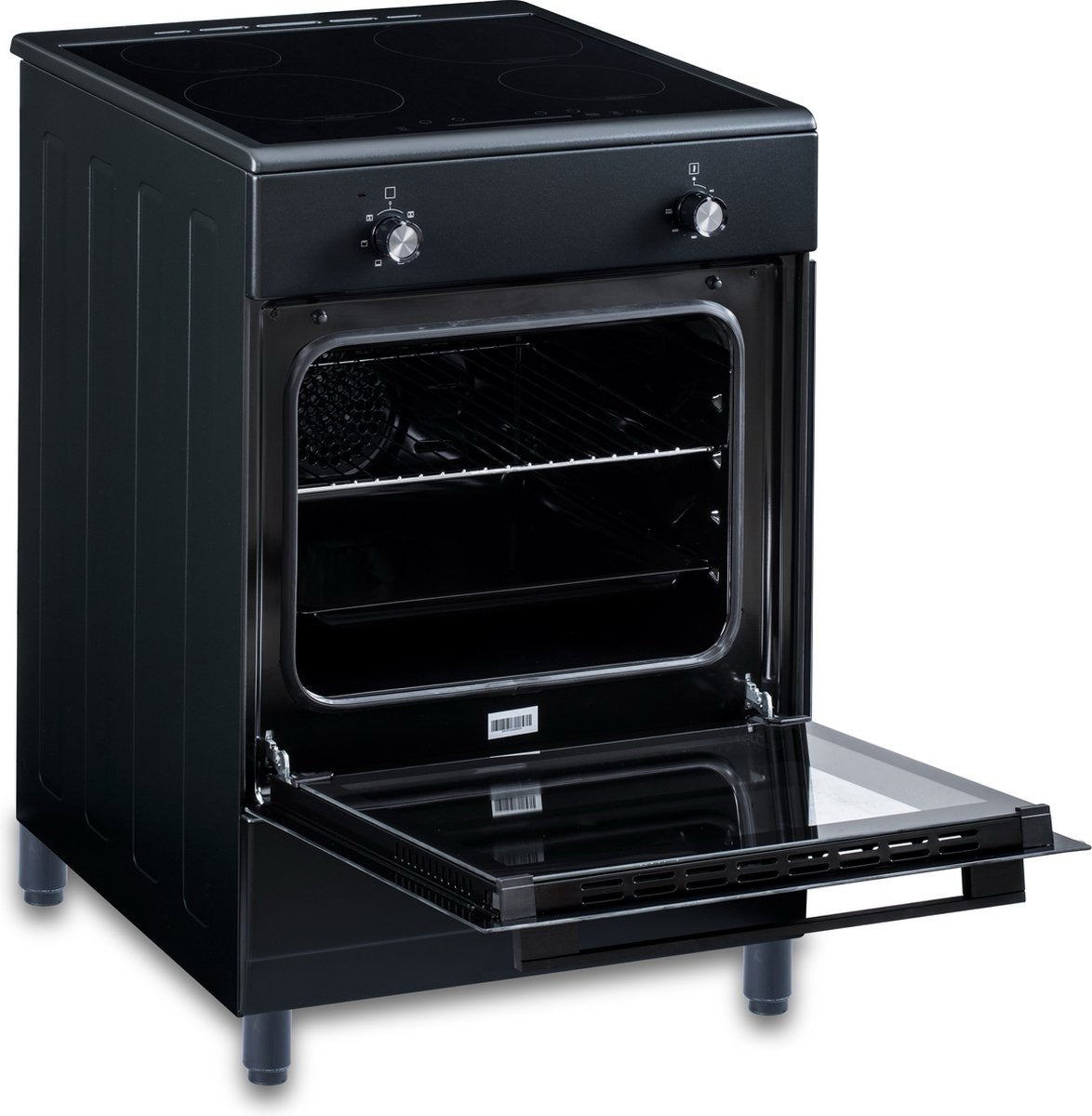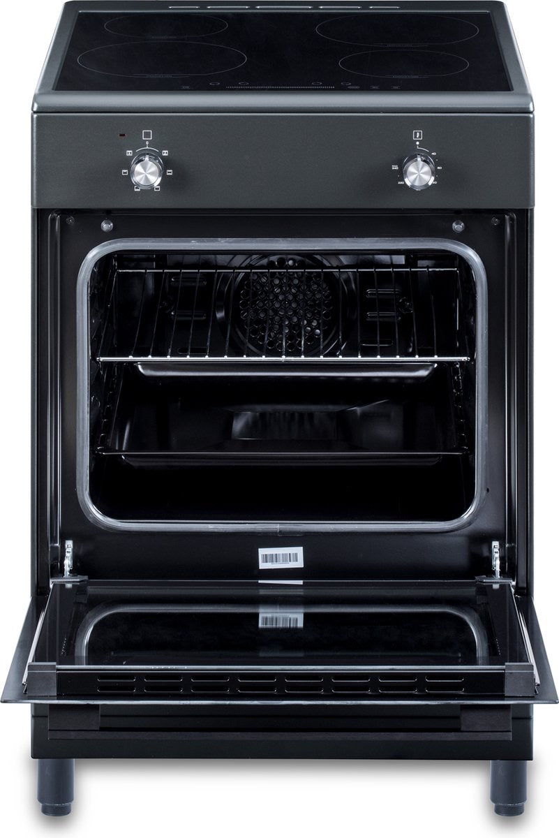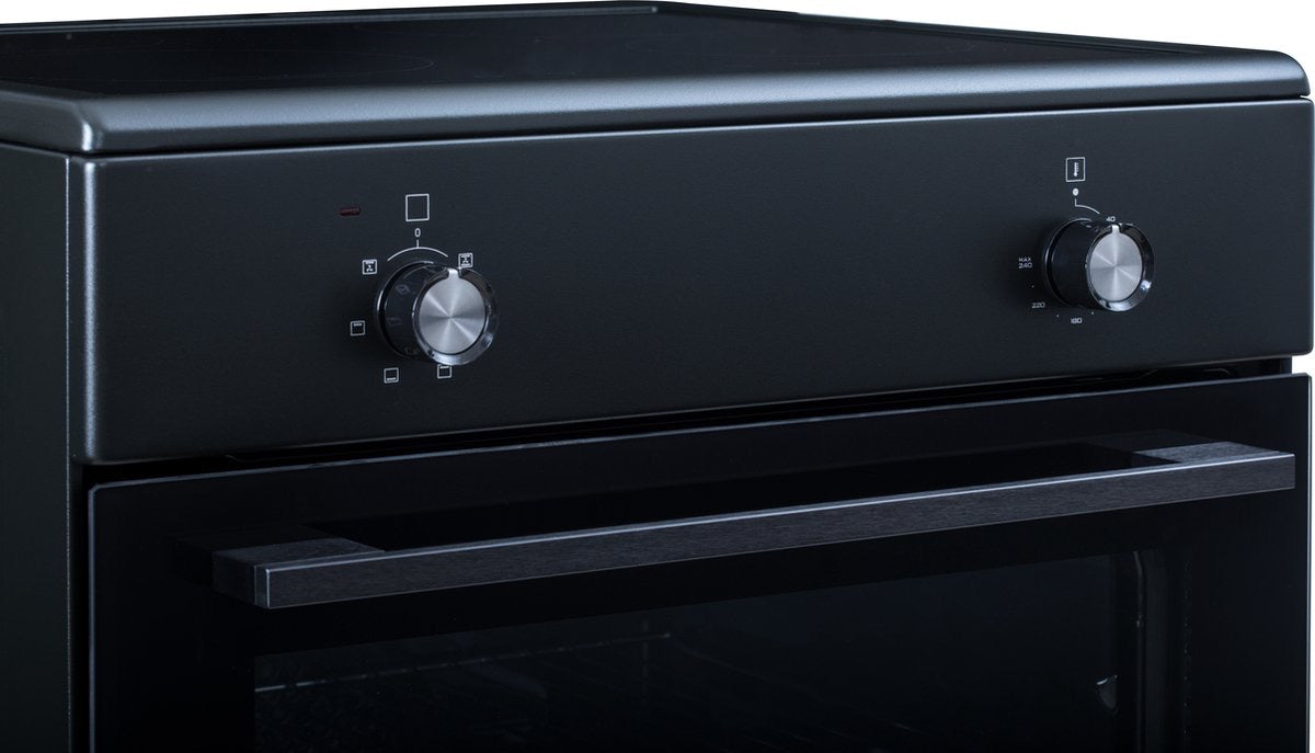Stijlvol en Ruimtelijk Design De EVCK6210 is ontworpen met een eigentijds mat zwart design dat uw keuken een moderne uitstraling geeft. Met zijn vrijstaande constructie en royale breedte van 60 centimeter past dit fornuis perfect in elke keukenruimte, ongeacht de grootte.