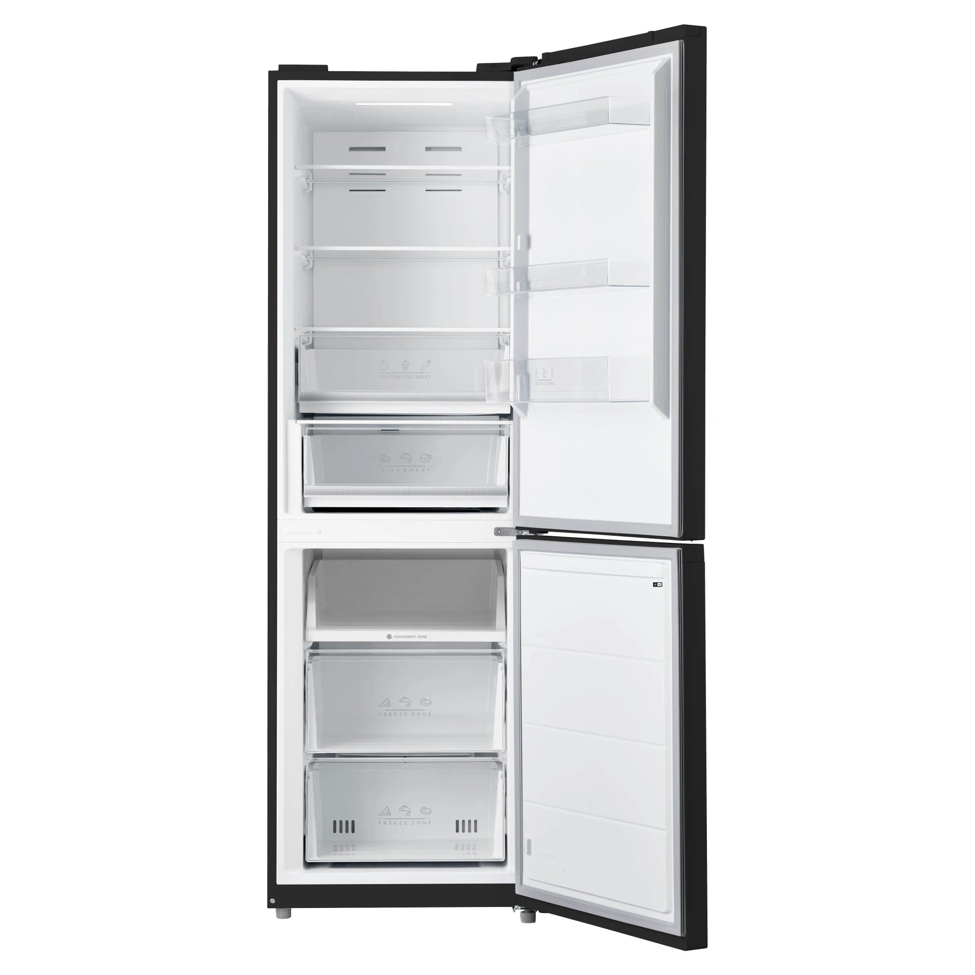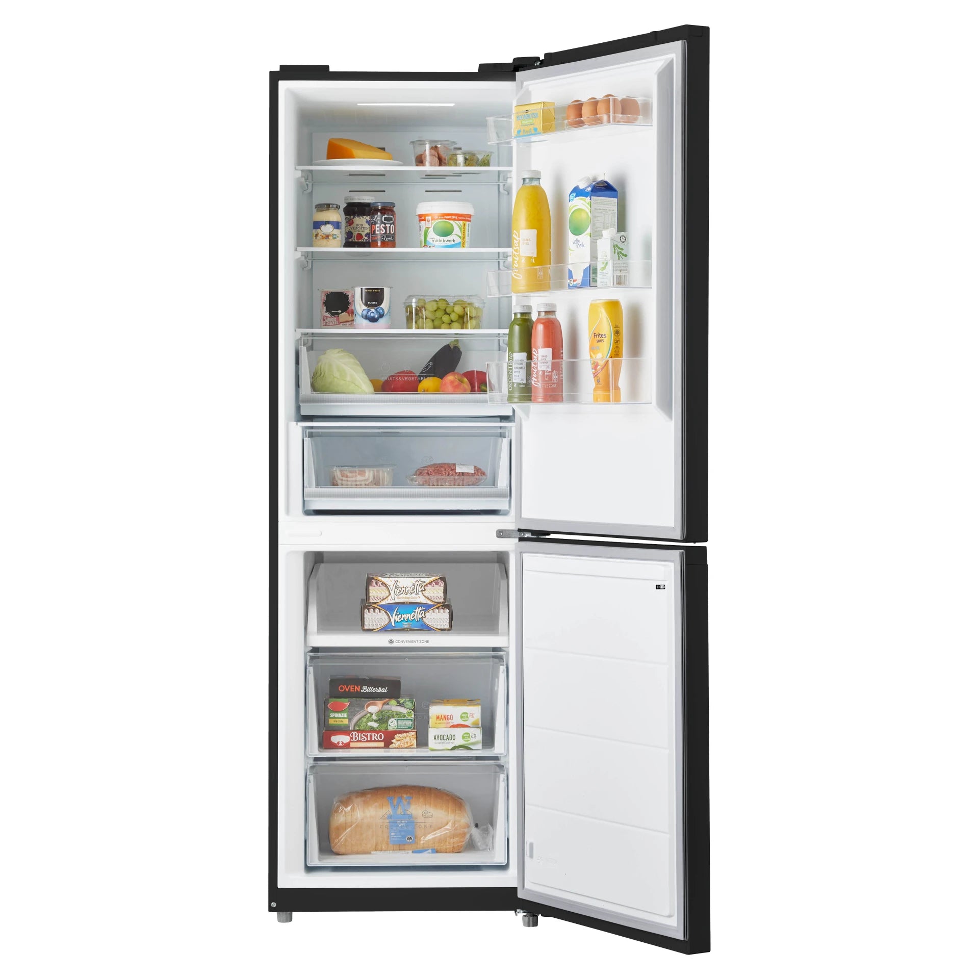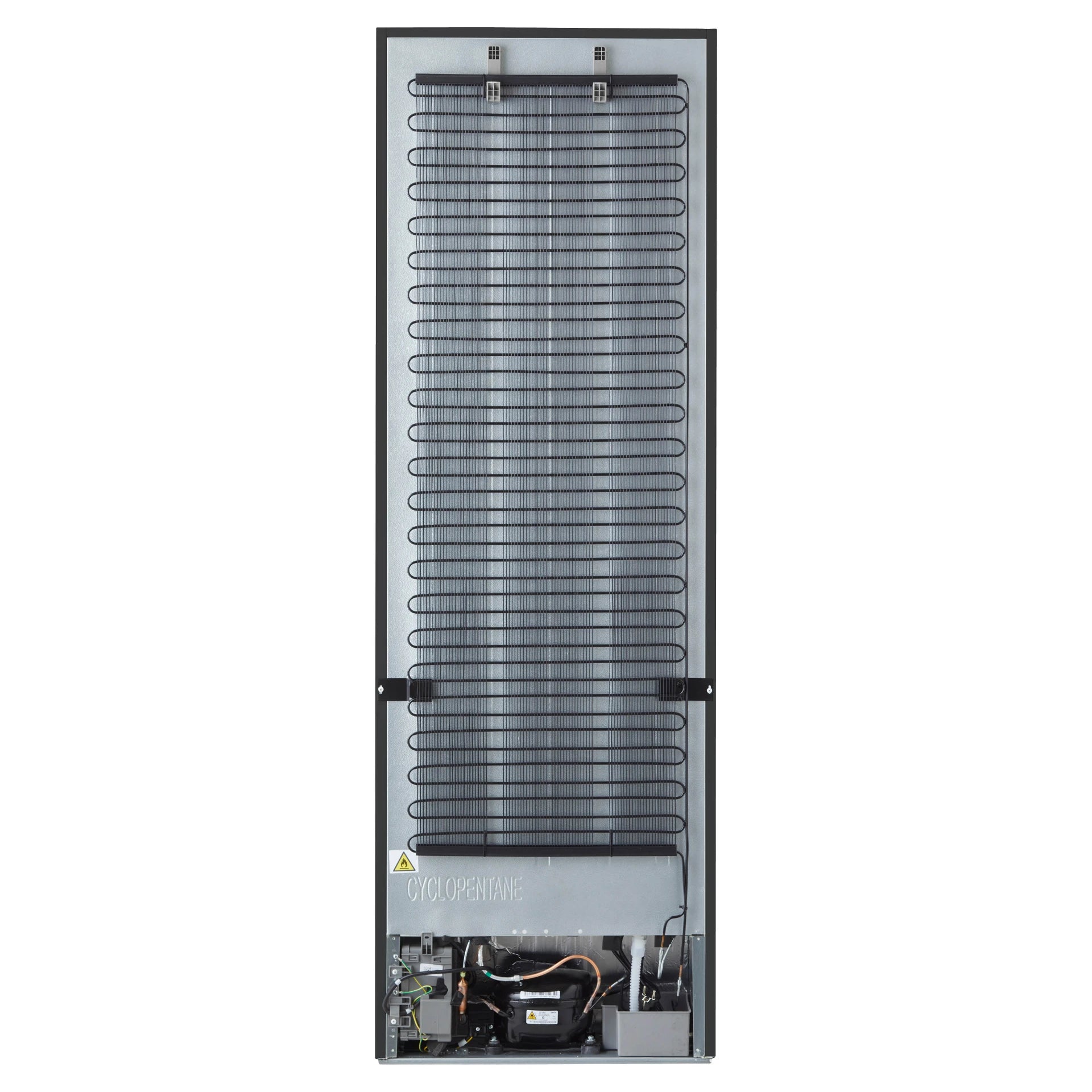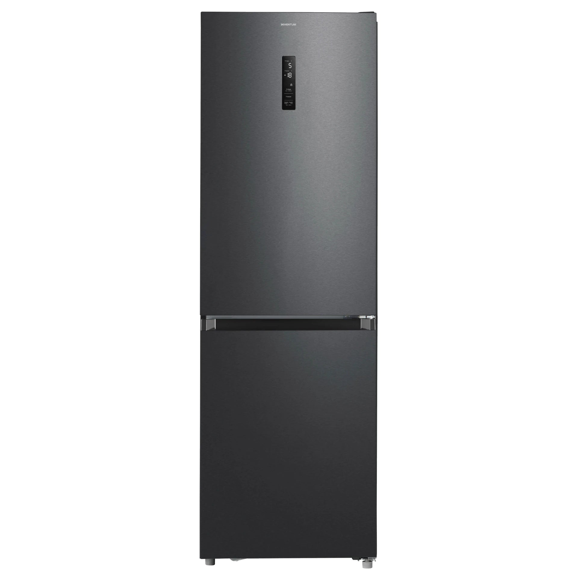 De zuinige en zeer stille vrijstaande koel- vriescombinatie KV1850B van Inventum heeft energieklasse C en een geluidsniveau van maar 35 dB. Het is een hoog model met een netto inhoud van 338 liter. Het koelgedeelte van 216 liter heeft een superkoelen-functie, 3 glazen draagplateaus, 1 variabele vershoudlade, 1 gewone groentelade, 3 deurvakken en led-verlichting. In de deur is de digitale regelbare thermostaat verwerkt. De 4 sterren vriezer van 122 liter heeft supervriezen, No Frost, 2 transparante lades en 1 open lade. Je kunt in 24 uur tot 8,5kg aan etenswaren invriezen en valt de stroom een keer uit, dan blijven je etenswaren 12 uur lang bevroren. Het apparaat is ook uitgerust met een handig alarm dat je waarschuwt als je de deur open laat staan. De draairichting van de deur kan worden aangepast.