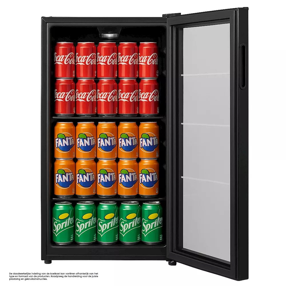 De Salora BCT935B is een compacte drankkoelkast met een royale inhoud van 93 liter. Ideaal voor het koelen van blikjes, flesjes of snacks. Dankzij het moderne zwarte design is deze koelkast een stijlvolle toevoeging aan iedere ruimte, of het nu gaat om je kantoor, studentenkamer of thuiskroeg. De verstelbare roosters zorgen voor flexibele indeling en de stille werking (slechts 39 dB) maakt hem perfect voor ruimtes waar rust gewenst is. De BCT935B is eenvoudig in gebruik, voorzien van binnenverlichting.