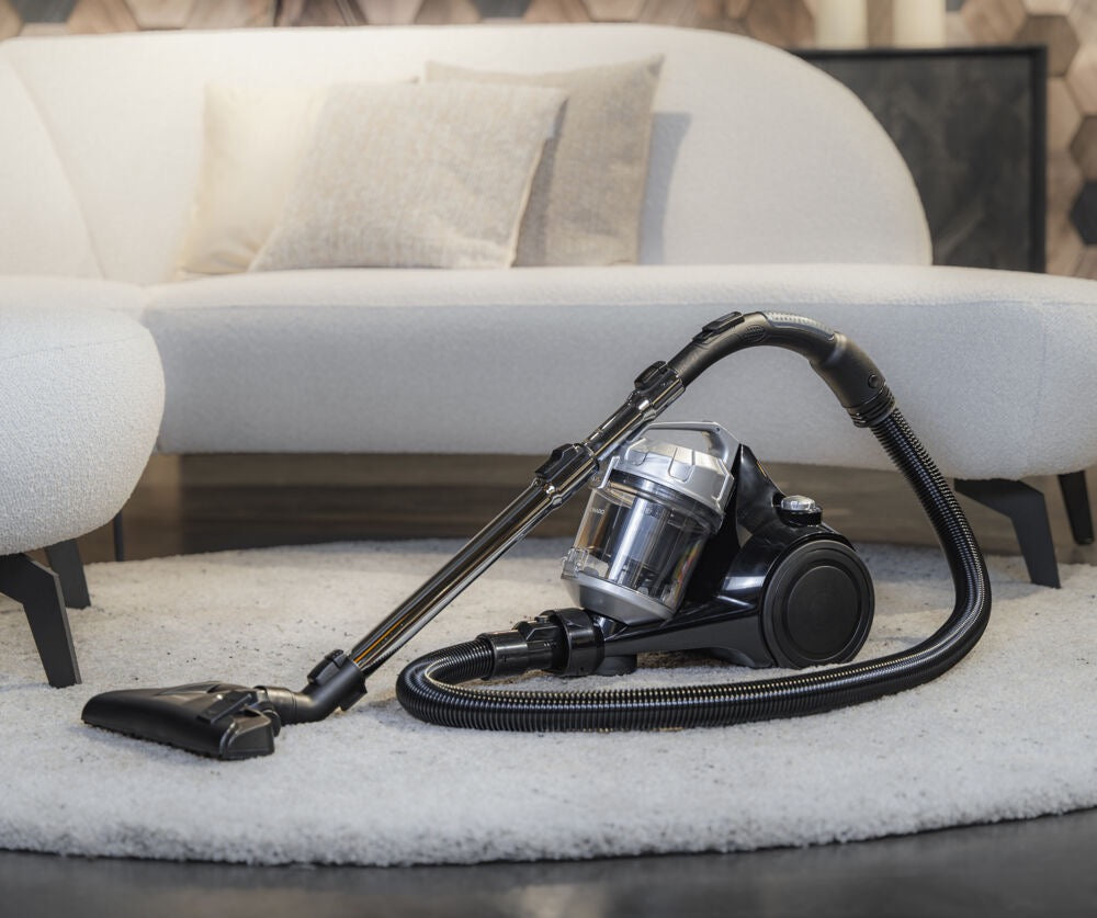 Je vloeren zijn snel stofvrij met deze krachtige zakloze stofzuiger TVC2001B van Tomado. Met een actieradius van 8 meter (5 meter snoer) heeft de stofzuiger een groot bereik. De stofzuiger heeft een ruime stofopvangbak met een capaciteit van 2 liter. De stofzuiger is zeer geschikt voor mensen met een allergie. Het HEPA 12 filter zorgt namelijk voor een minimale stofheruitstoot en filtert 99,5% van de stofdeeltjes, pollen en allergenen uit de lucht. De stofzuiger heeft een regelbare zuigkracht op de stang en een krachtige 700 watt motor voor een maximale stofopname. De ergonomische rubberen handgreep zorgt voor extra comfort tijdens het stofzuigen.
